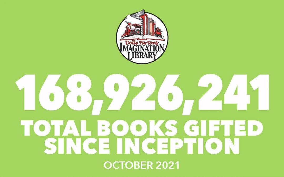 In October, Dolly Parton’s Imagination Library gifted over 1,879,443 books. The total number of free books gifted as of October 2021, is 168,926,241!
